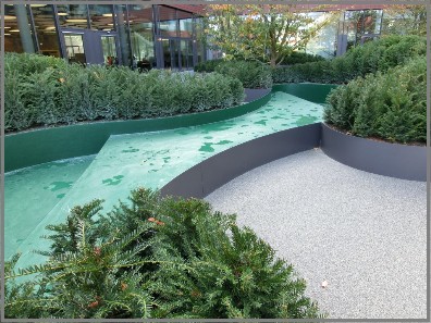 Sonderanfertigungen Beete Stiftungsterrasse: Beeteinfassungen BED-Line in Aluminium mit Materialstärke 6 mm pulverbeschichtet mit Aussteifungselementen radial nach Vorgaben des AG